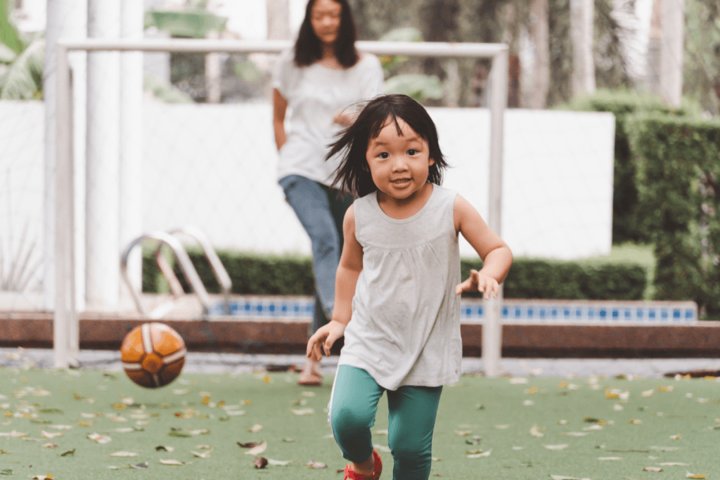 ✓ Tenta dar pontapé numa bola (equilíbrio sobre um pé);